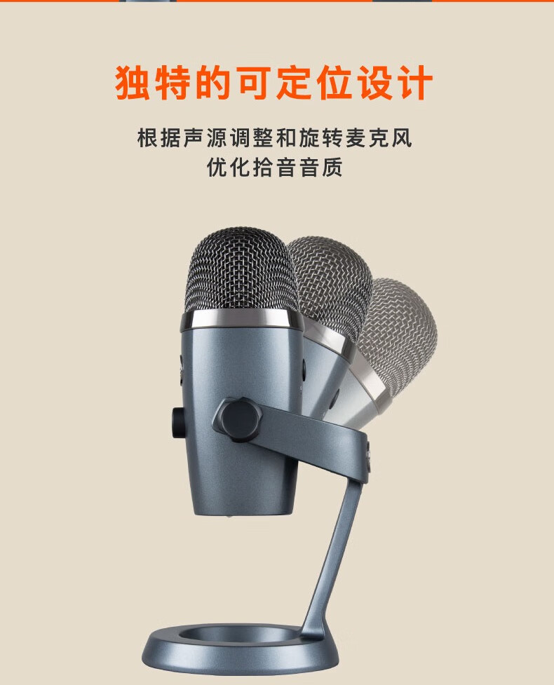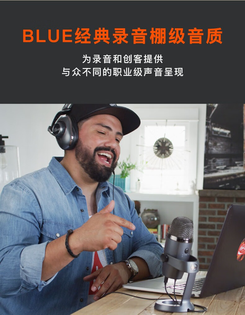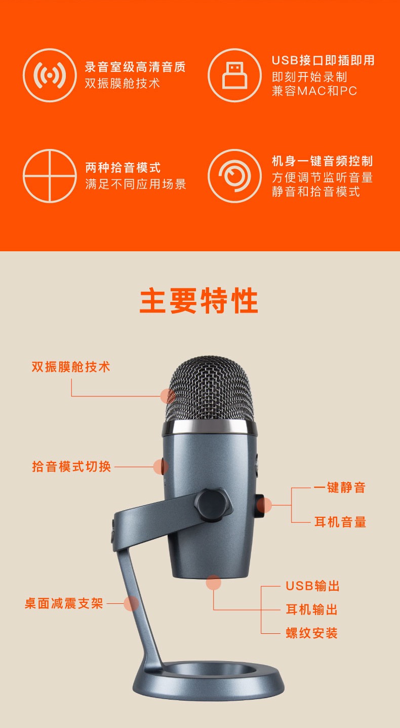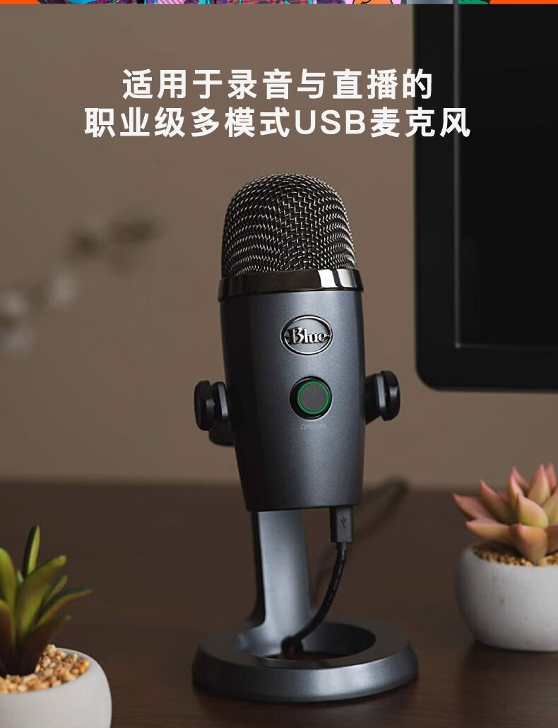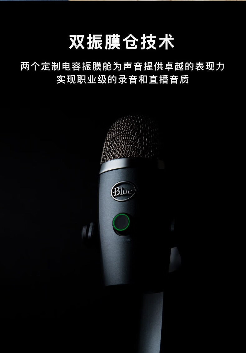 罗技(logitech) Blue Yeti Nano小雪怪USB专业电容麦克风电脑手机直播K歌录音 黑色