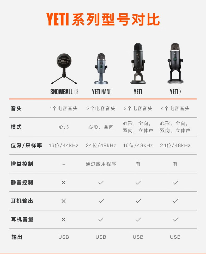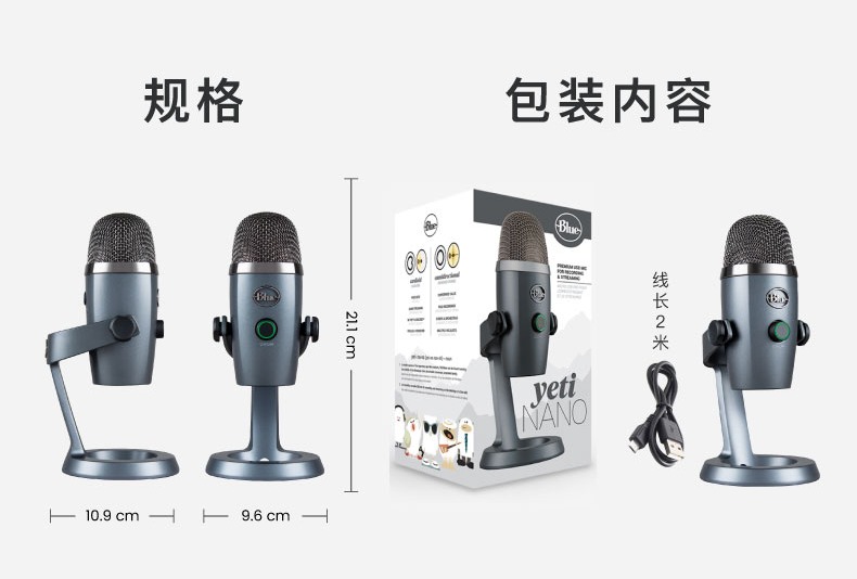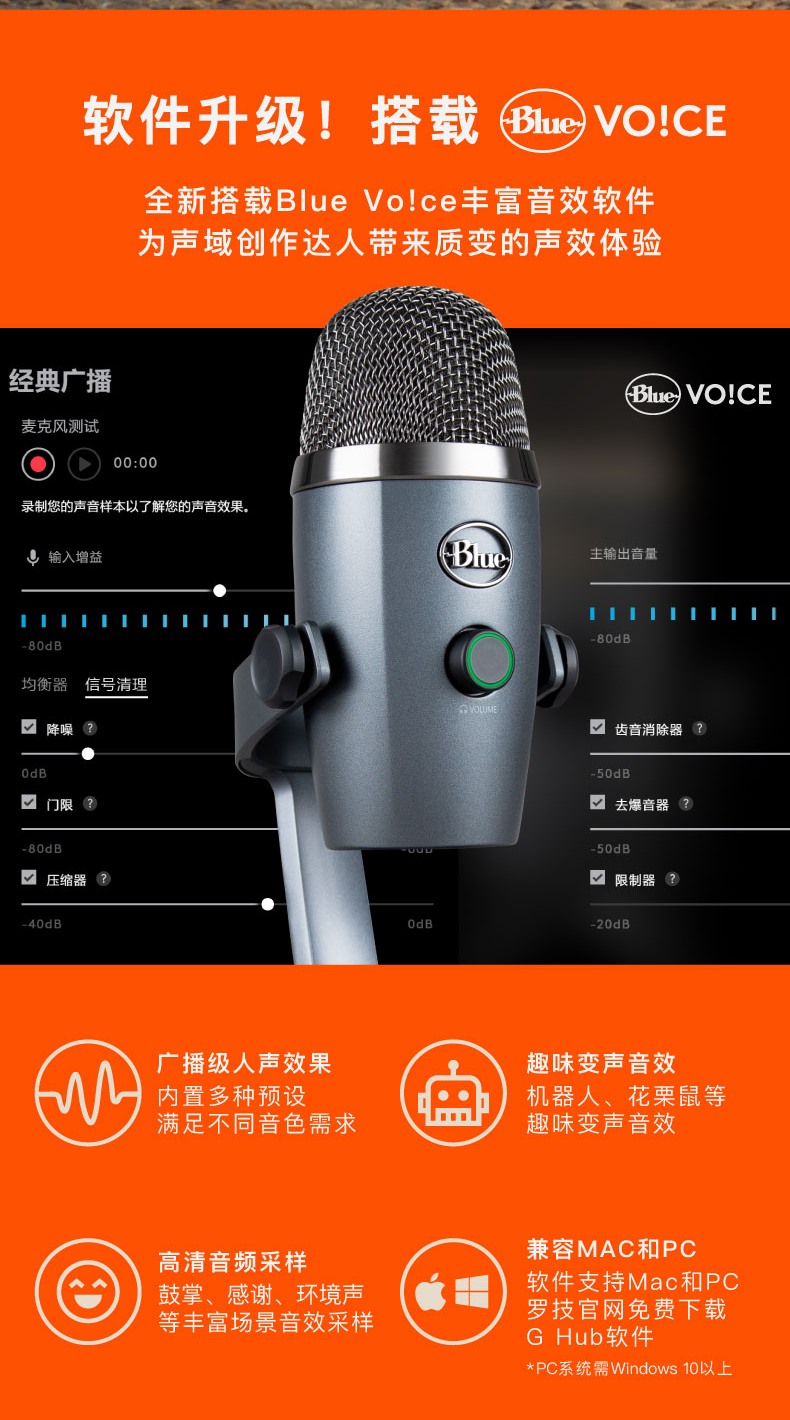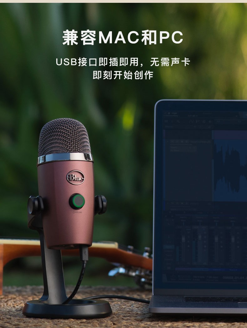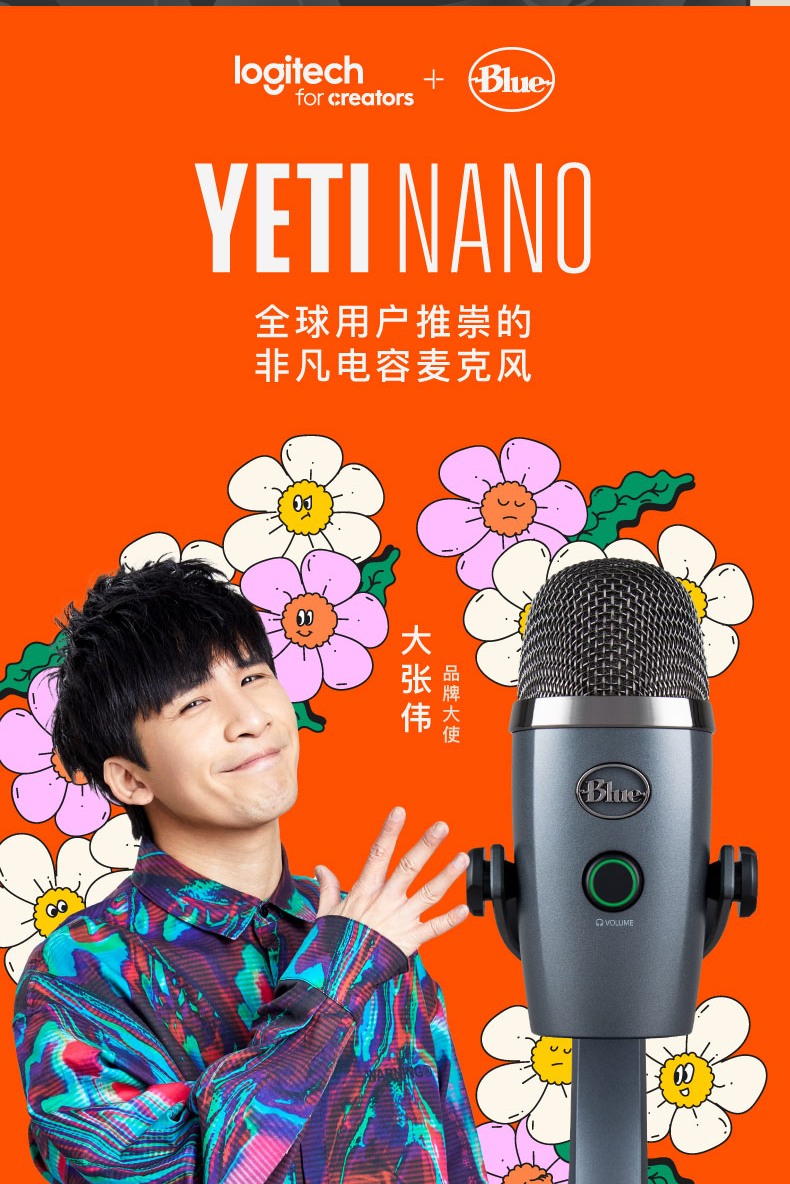 罗技(logitech) Blue Yeti Nano小雪怪USB专业电容麦克风电脑手机直播K歌录音 黑色