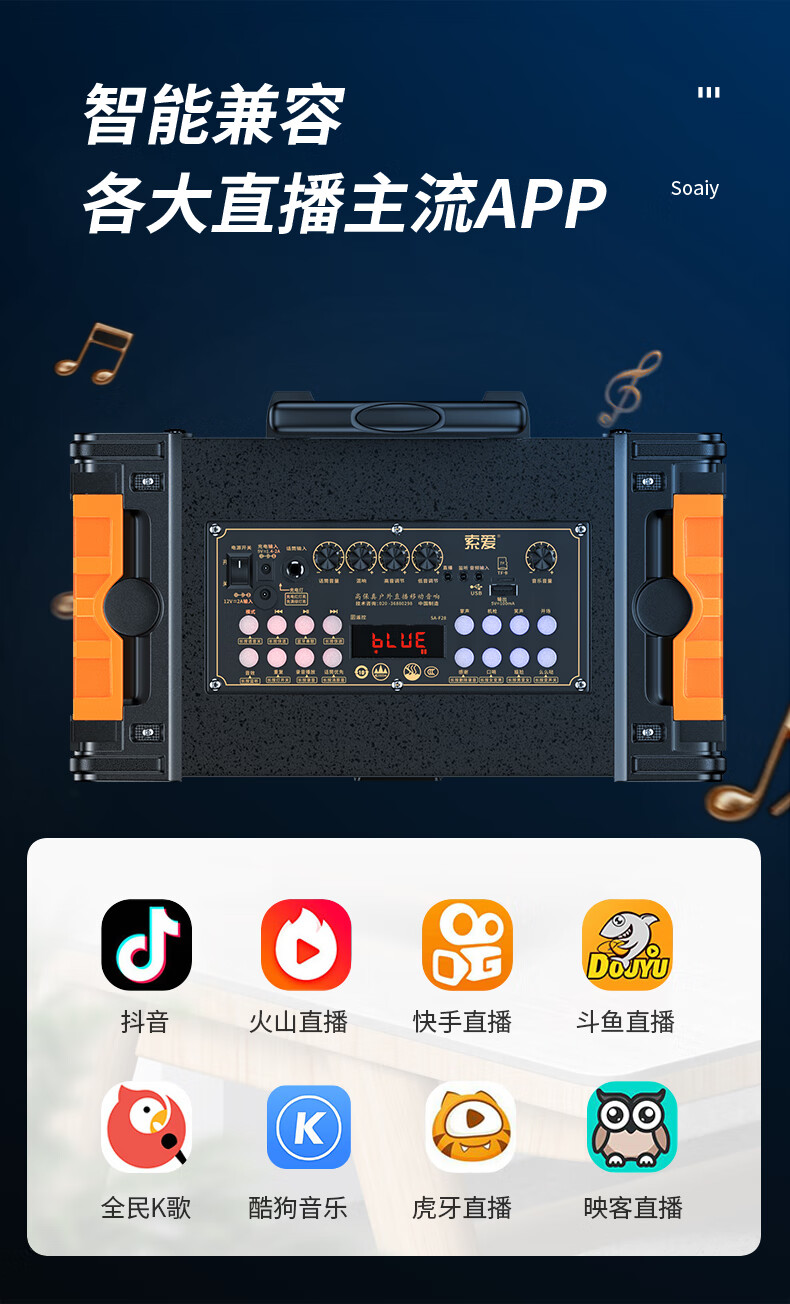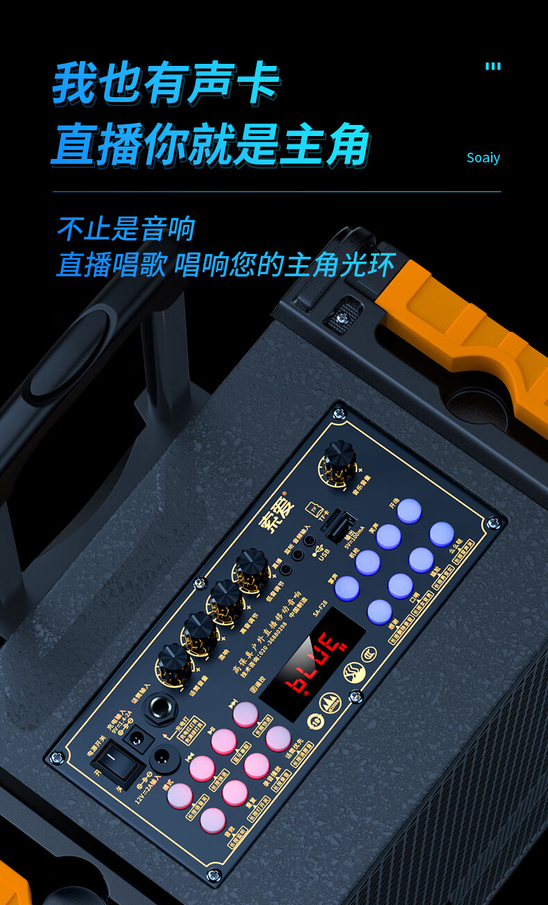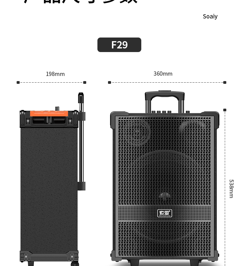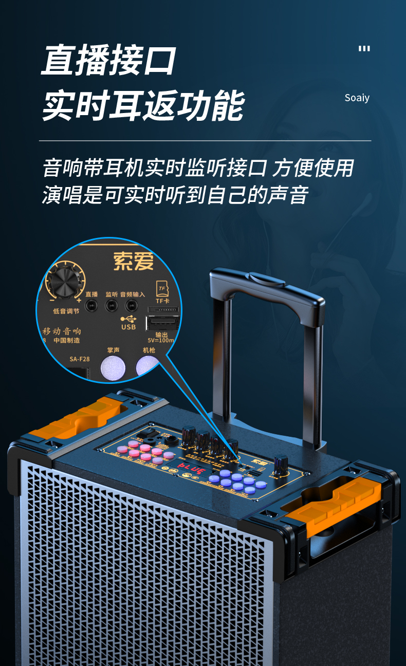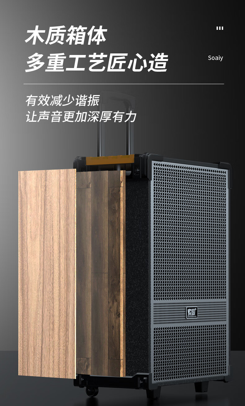 索爱(suoai) 音响户外广场舞音箱背带三分频拉杆便携内置声卡网红直播演出蓝牙木质大功率重低音K歌 F28-8吋内置声卡背带款+双话筒