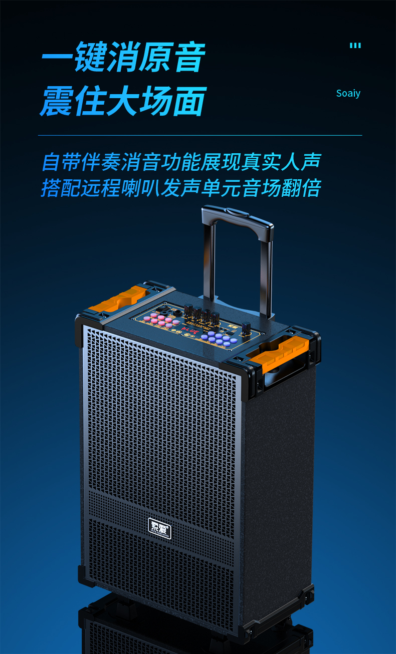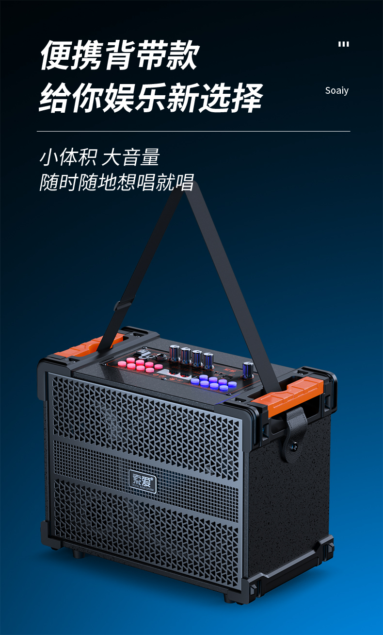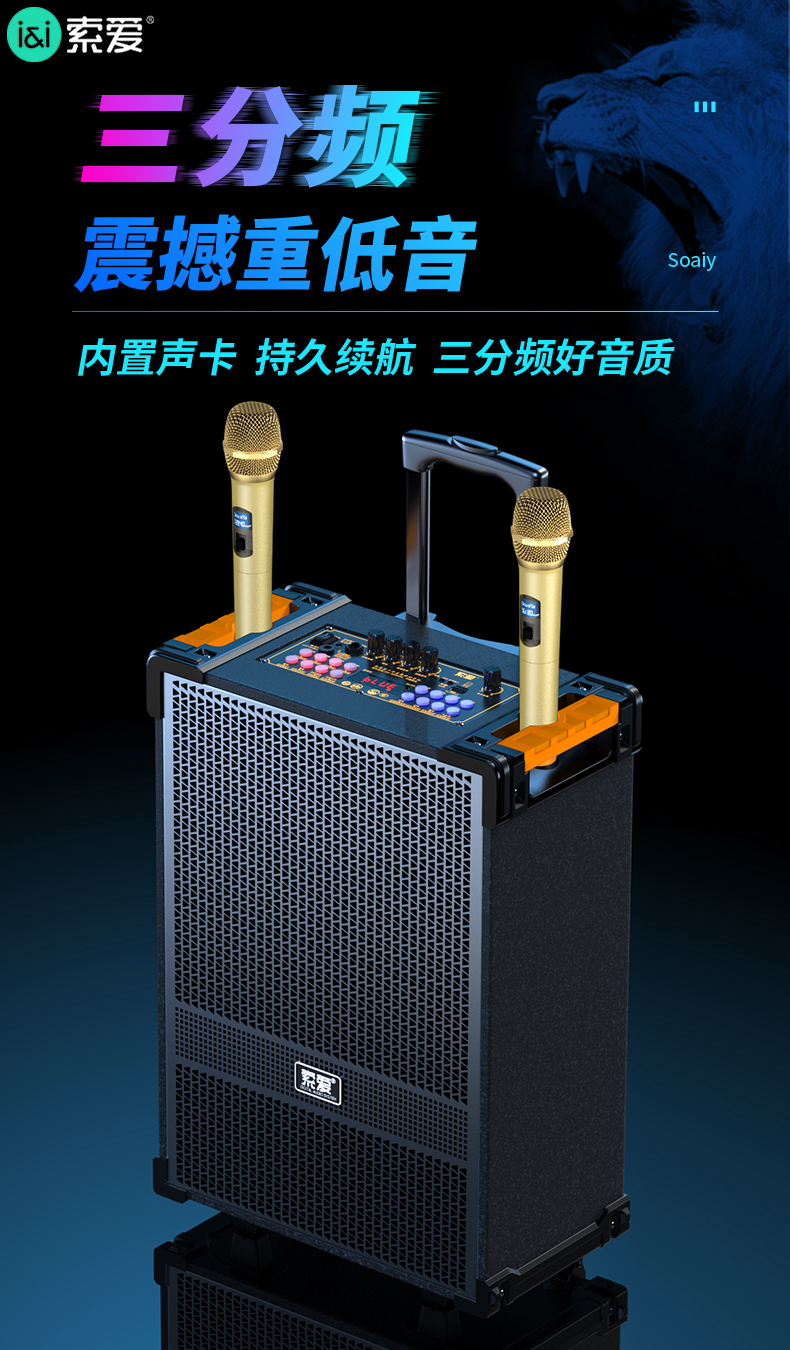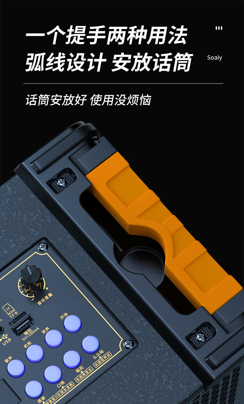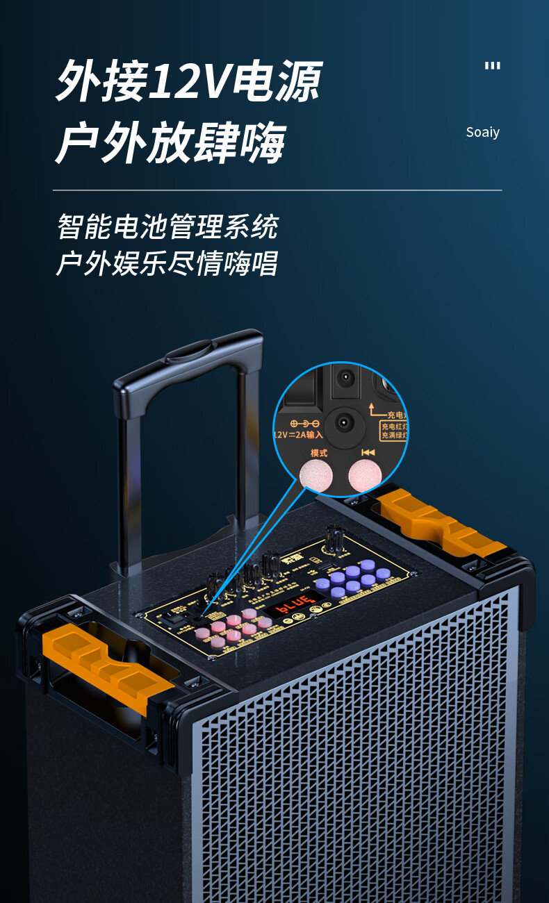 索爱(suoai) 音响户外广场舞音箱背带三分频拉杆便携内置声卡网红直播演出蓝牙木质大功率重低音K歌 F28-8吋内置声卡背带款+双话筒