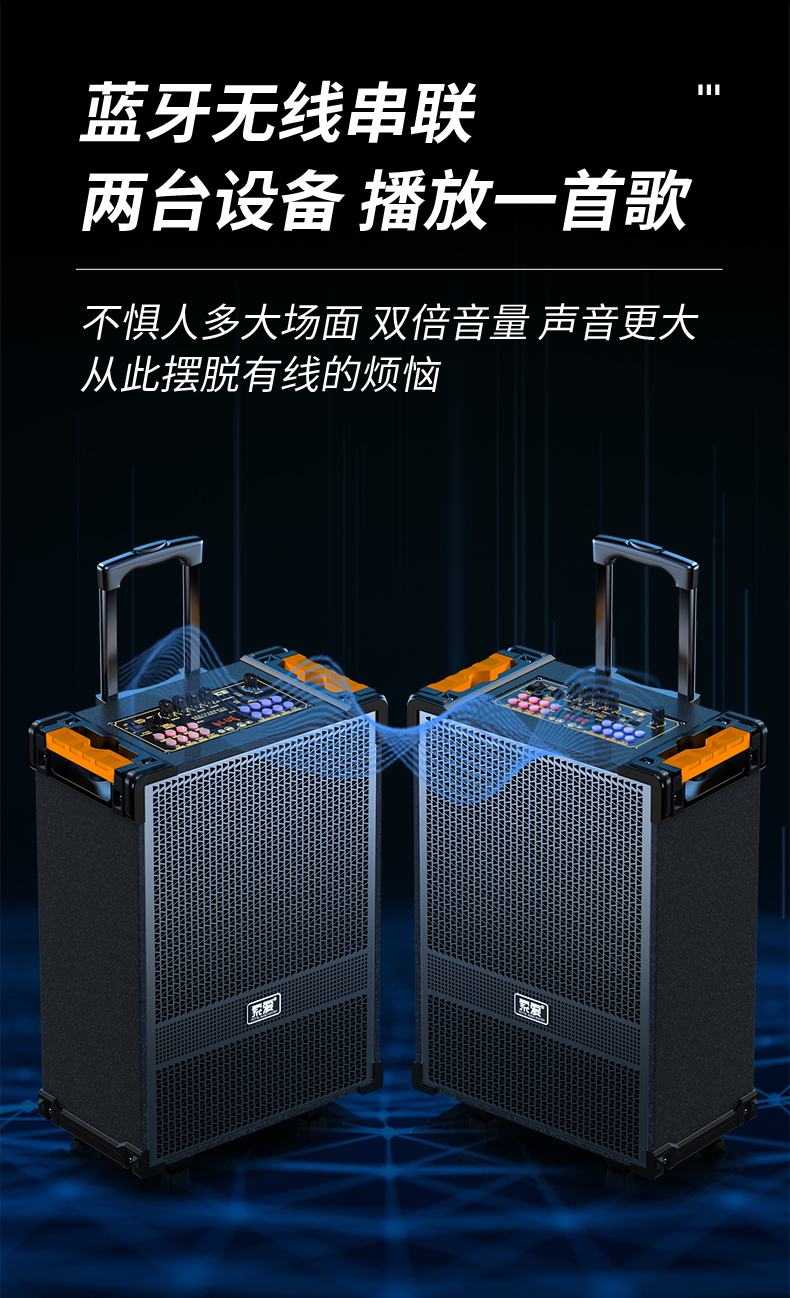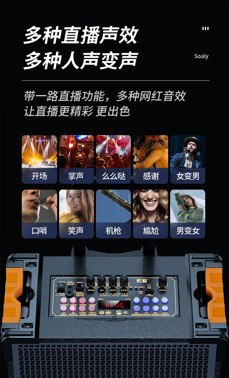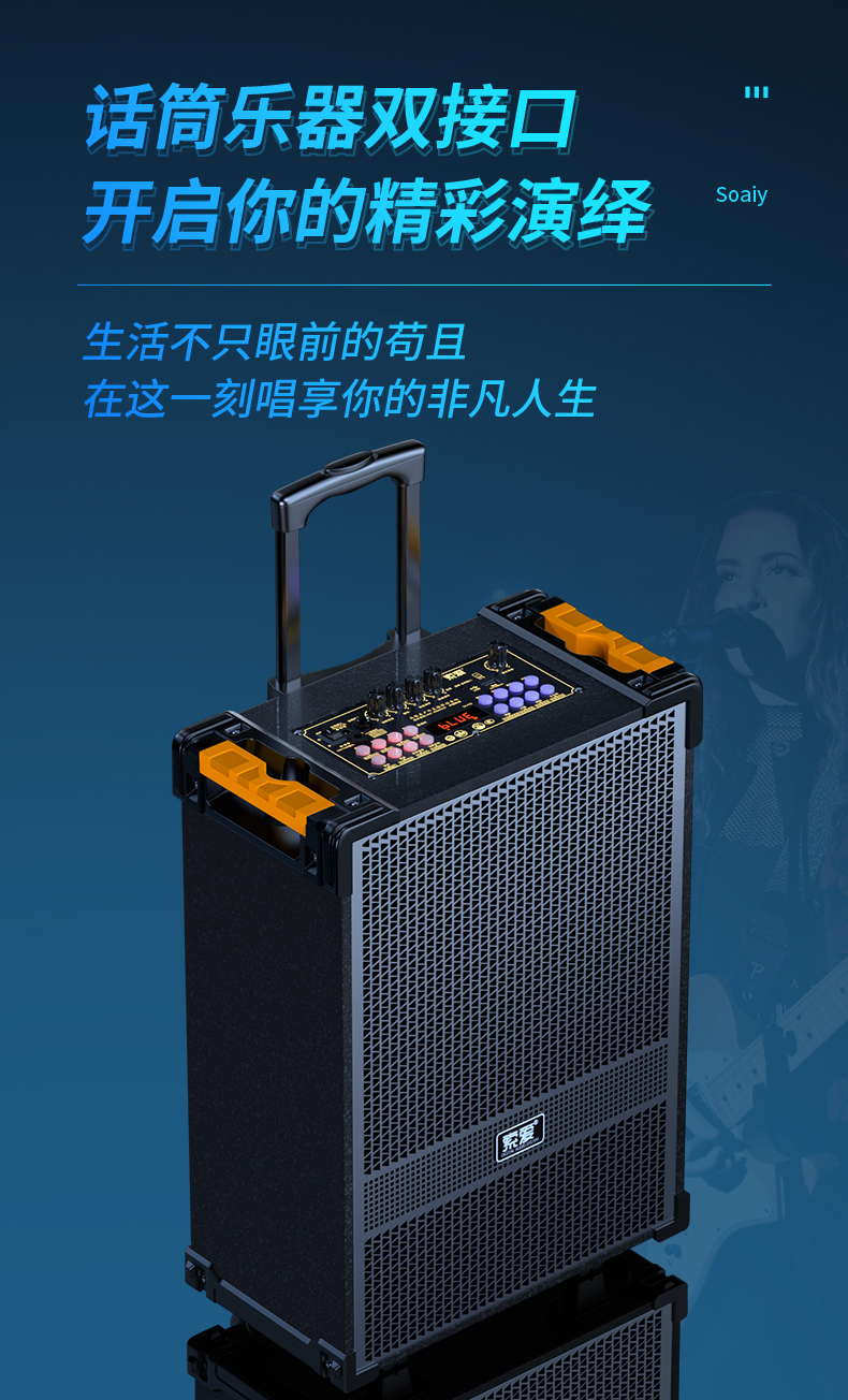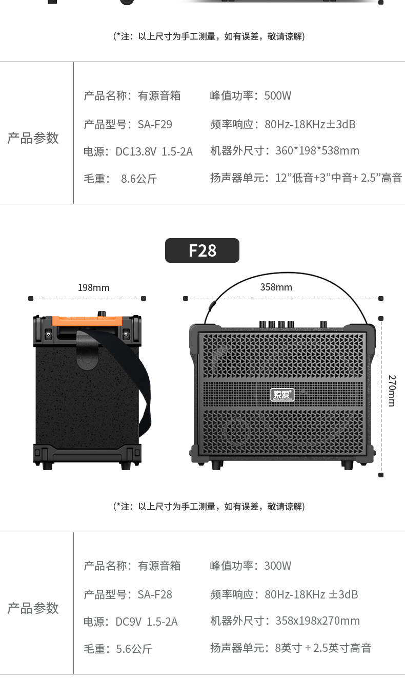 索爱(suoai) 音响户外广场舞音箱背带三分频拉杆便携内置声卡网红直播演出蓝牙木质大功率重低音K歌 F28-8吋内置声卡背带款+双话筒