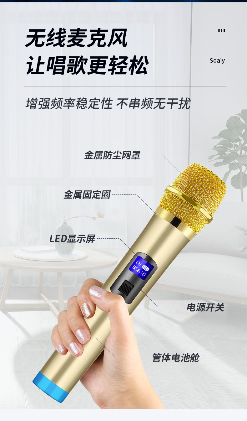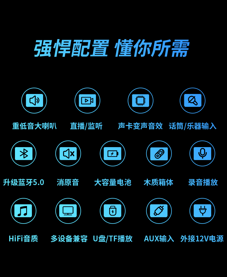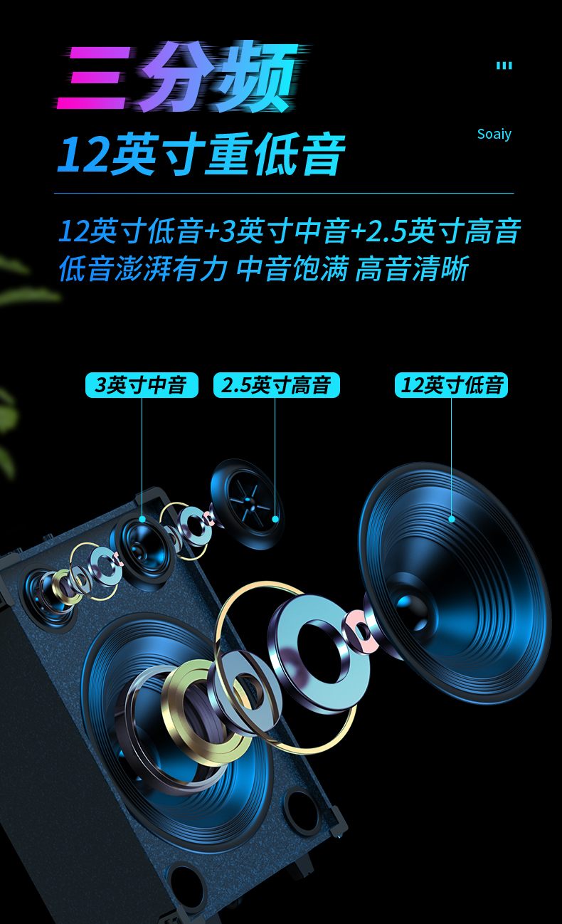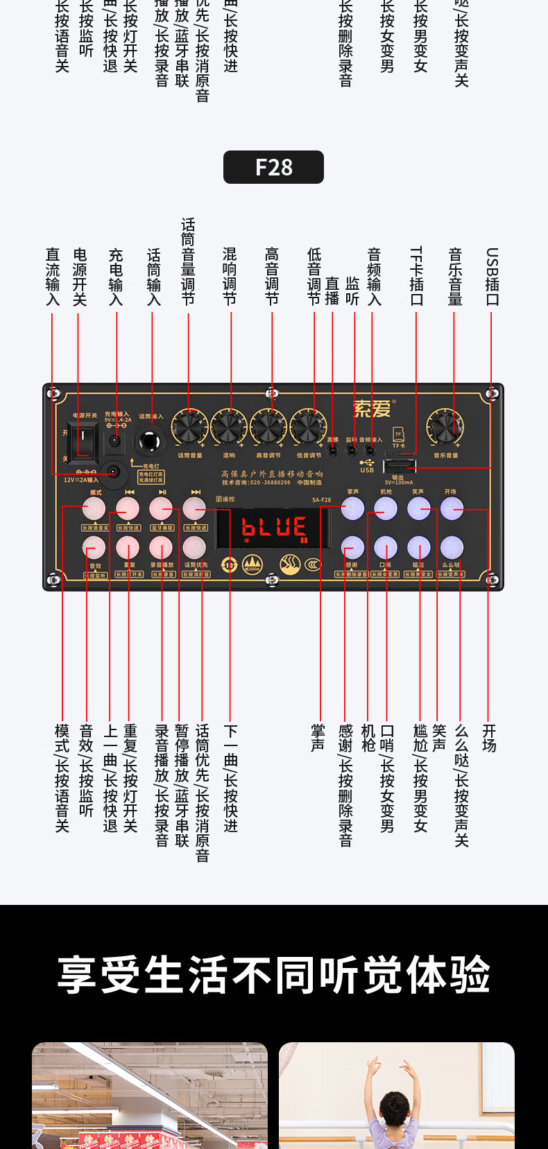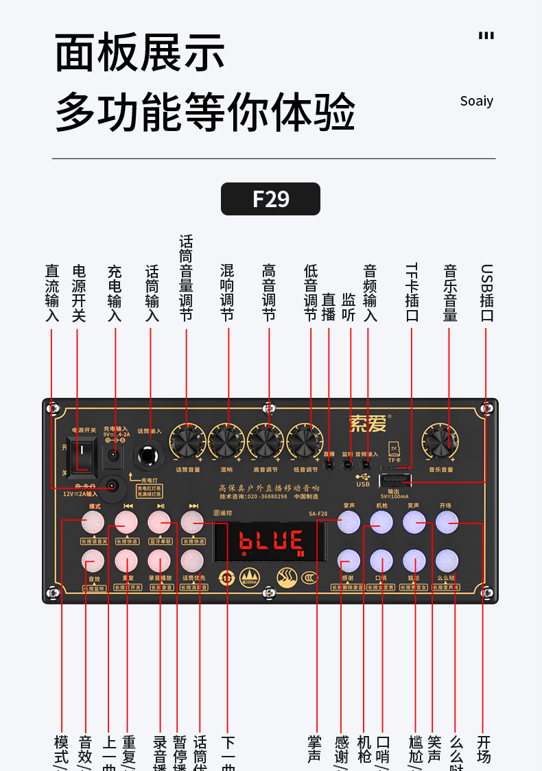 索爱(suoai) 音响户外广场舞音箱背带三分频拉杆便携内置声卡网红直播演出蓝牙木质大功率重低音K歌 F28-8吋内置声卡背带款+双话筒