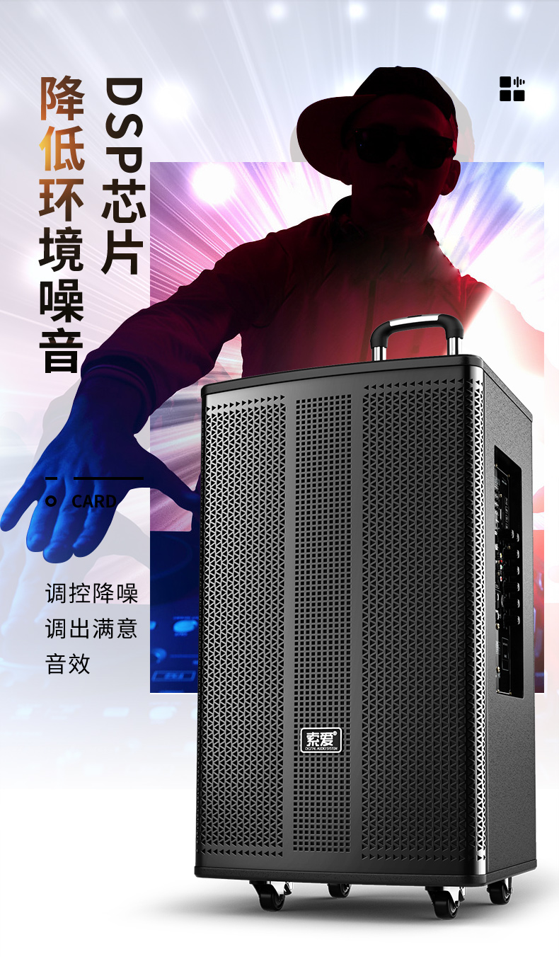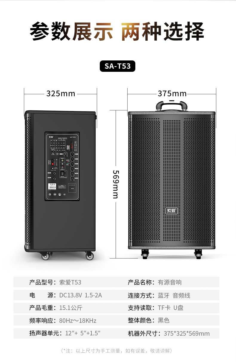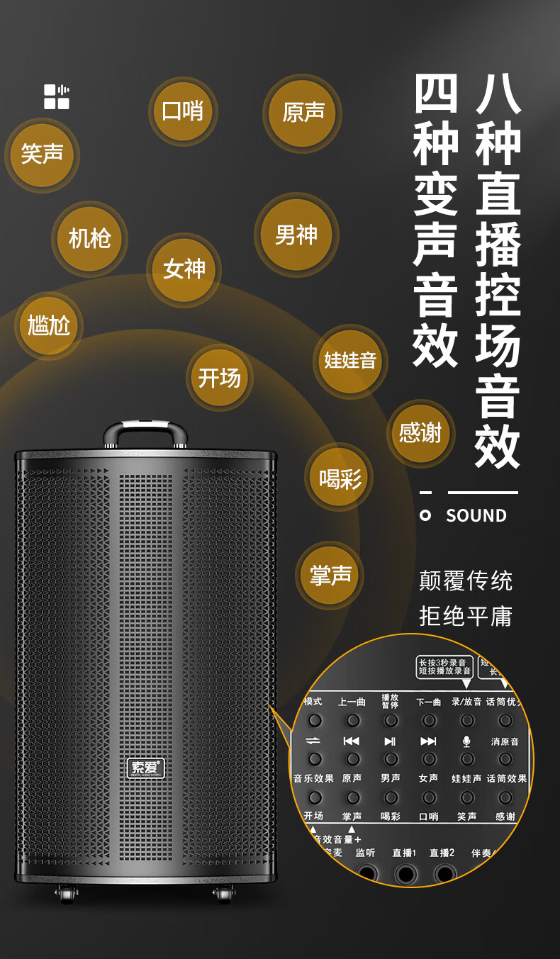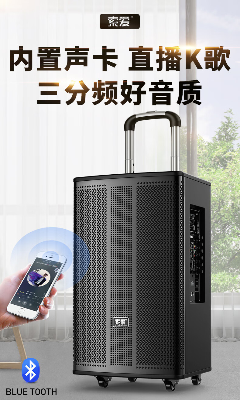 索爱(soaiy)SA-T55户外三分频音箱广场舞音响大功率蓝牙便携式拉杆家用K歌直播自带声卡演出专业唱歌设备