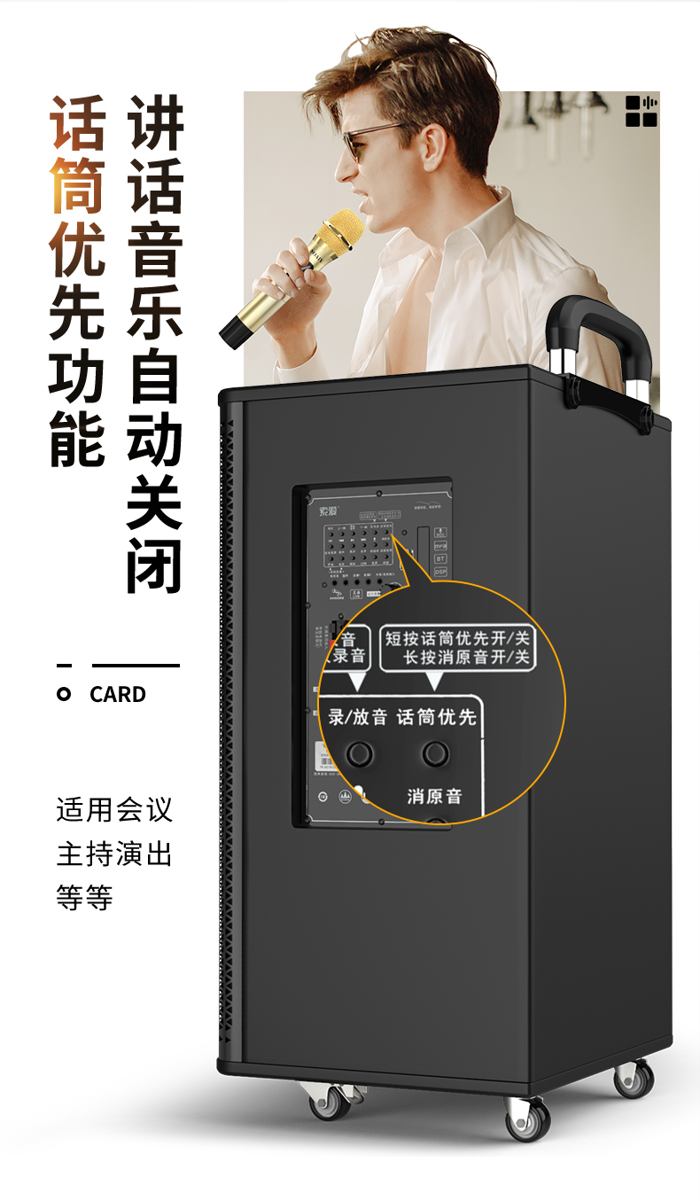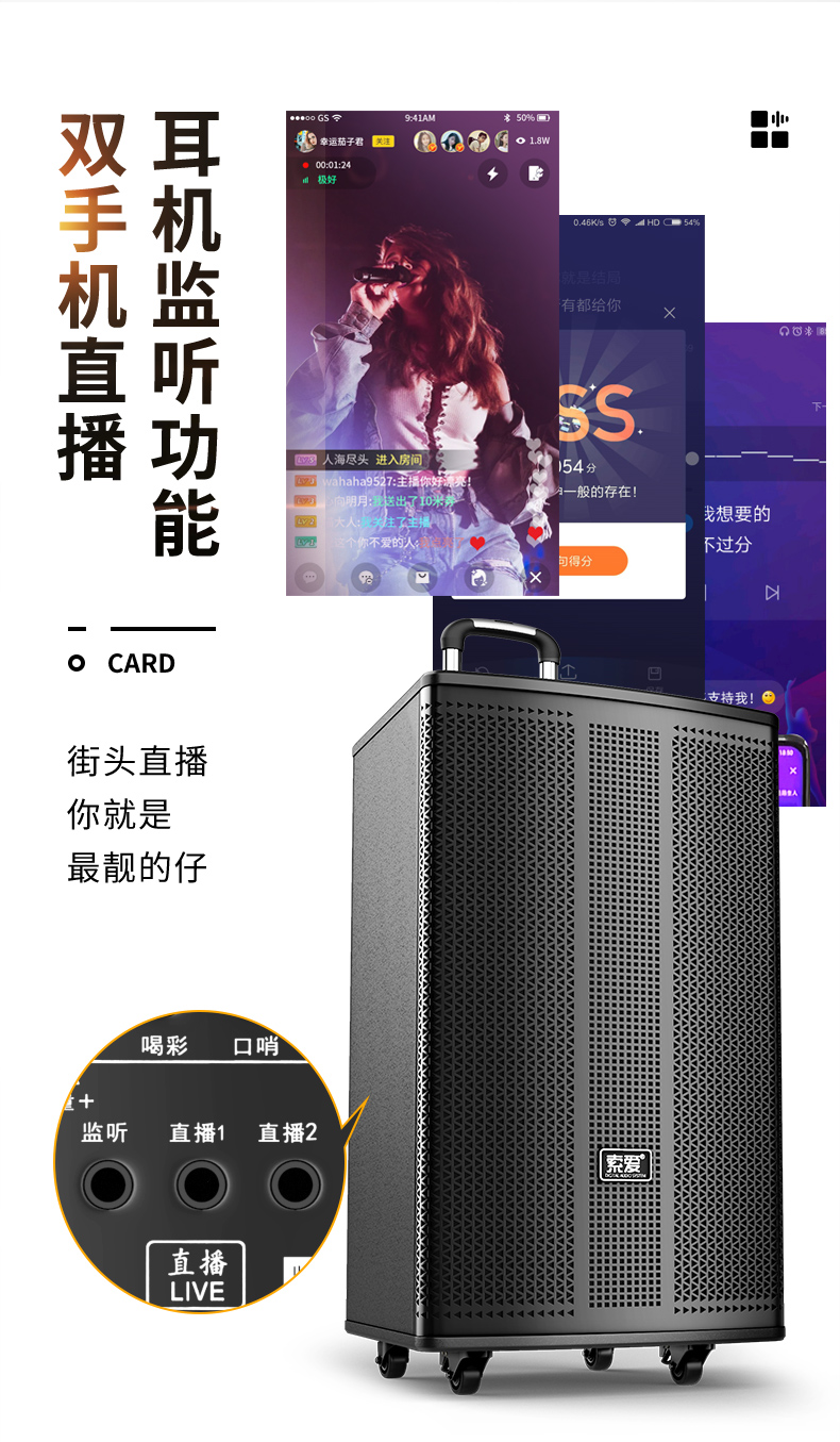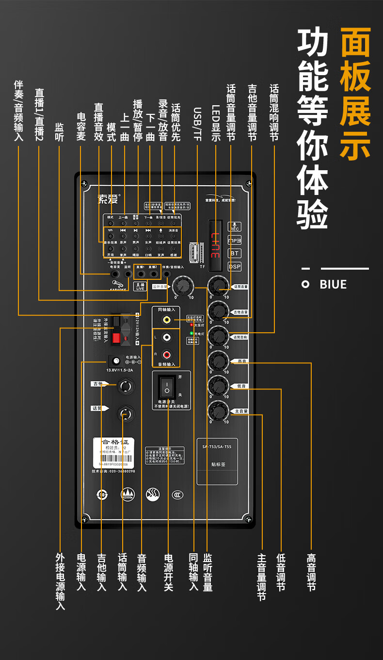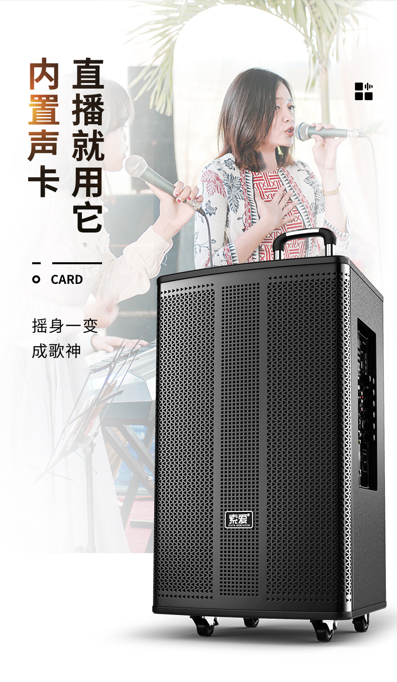 索爱(soaiy)SA-T55户外三分频音箱广场舞音响大功率蓝牙便携式拉杆家用K歌直播自带声卡演出专业唱歌设备