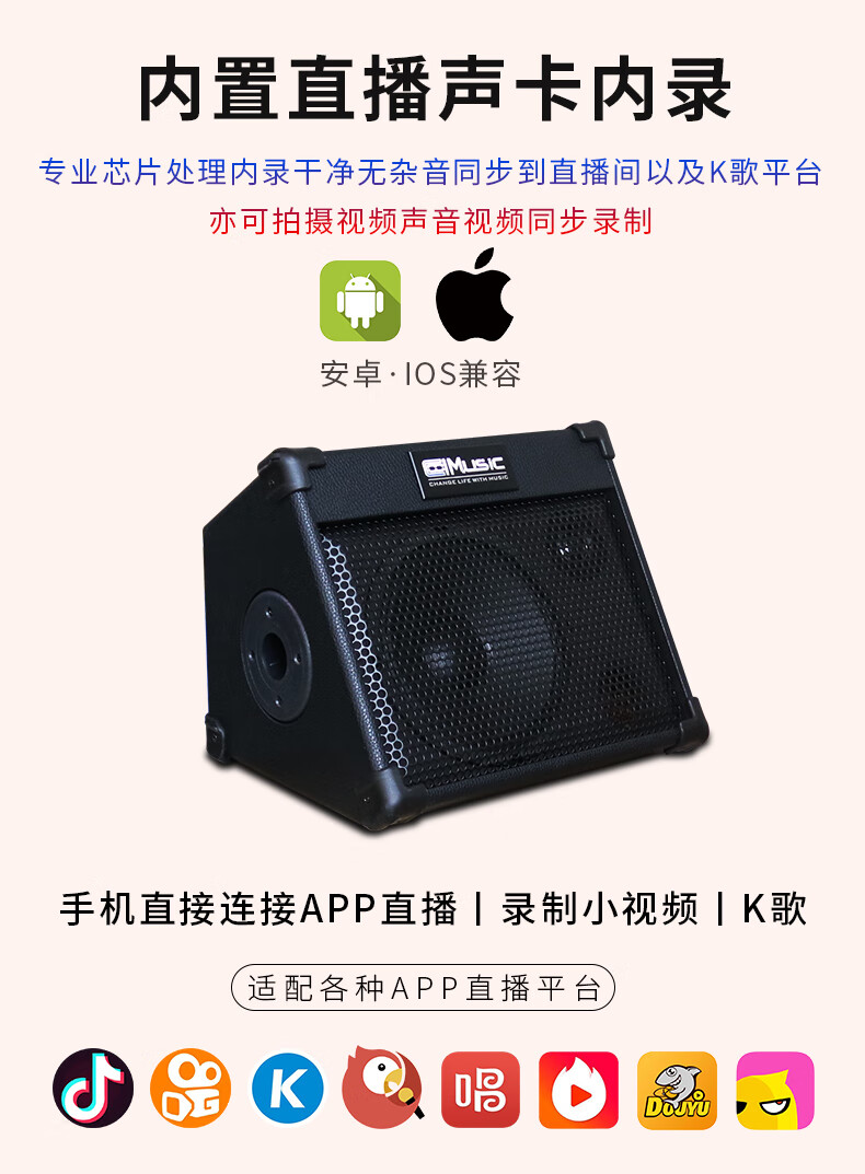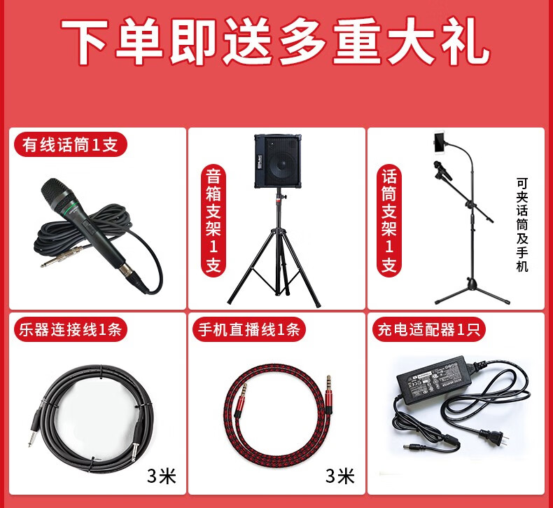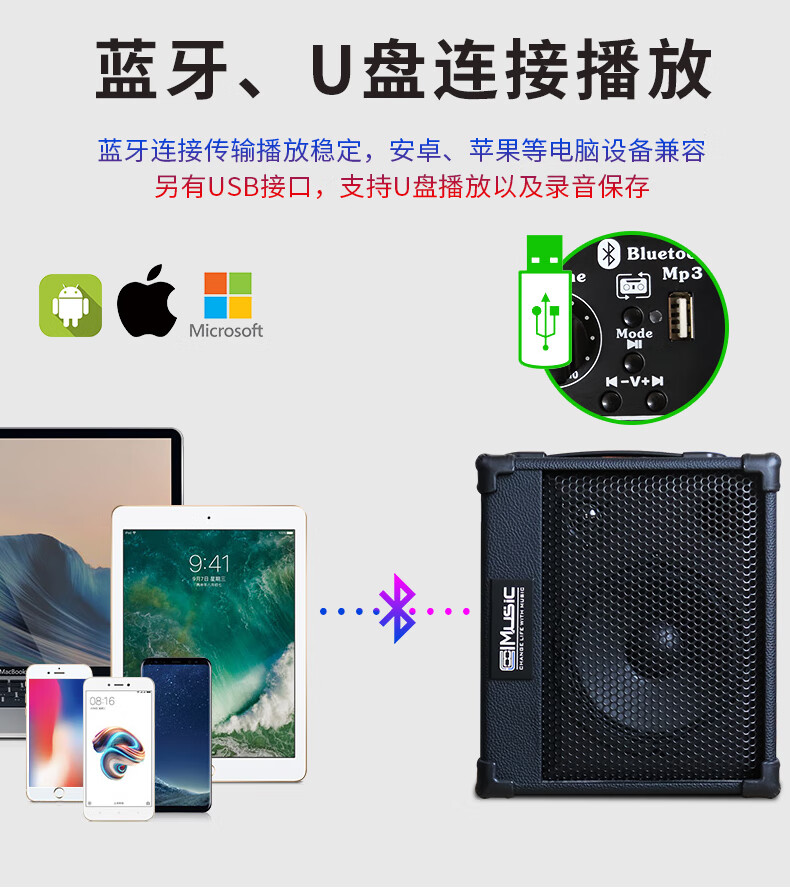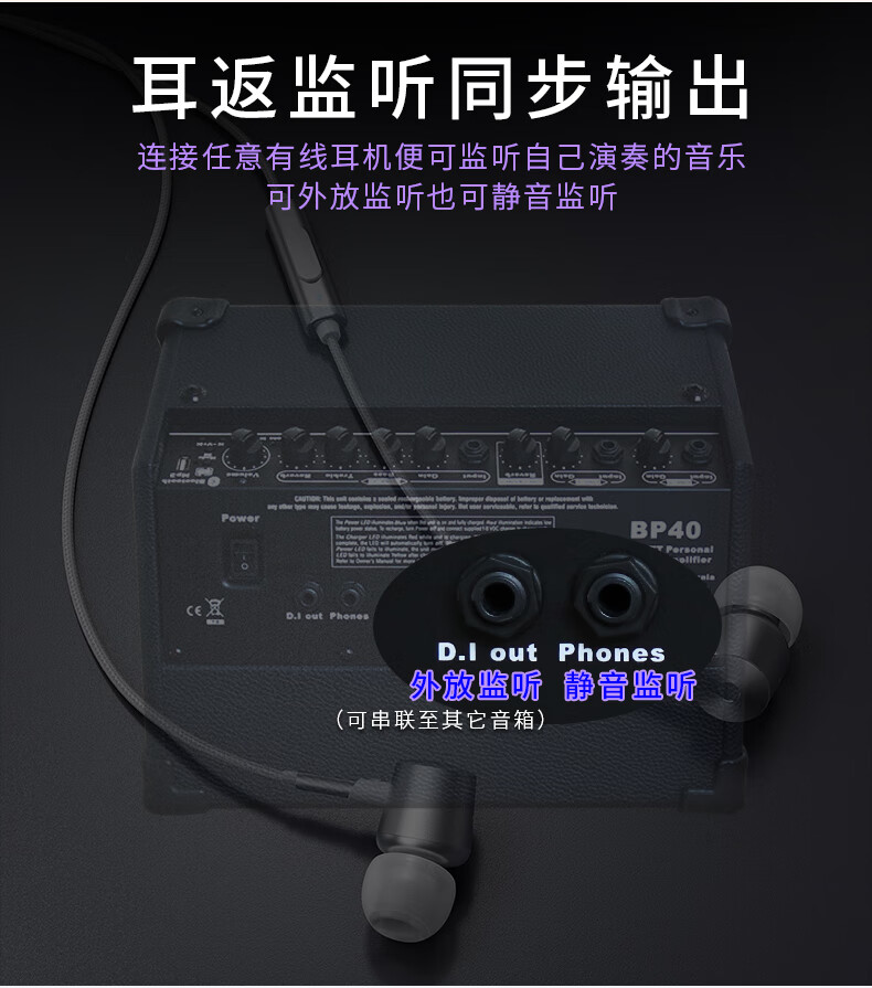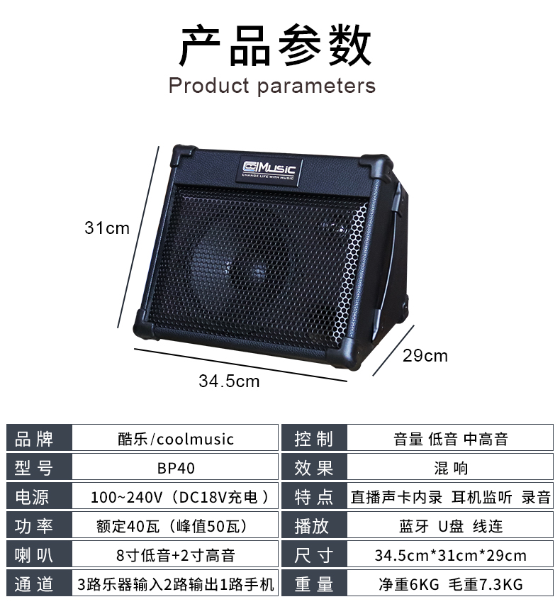 酷乐BP40户外弹唱专业木吉他音箱萨克斯电子琴街头演出卖唱直播音响充电便携 BP40+有线话筒