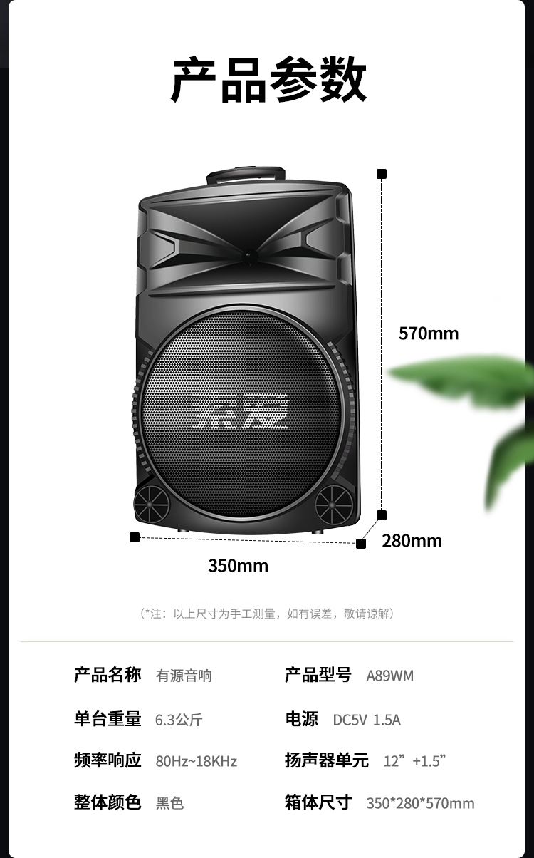 索爱(soaiy)A89WM 12英寸广场舞音响大功率低音炮移动户外K歌蓝牙拉杆麦克风音箱扩音器无线话筒摊摆摊喇叭