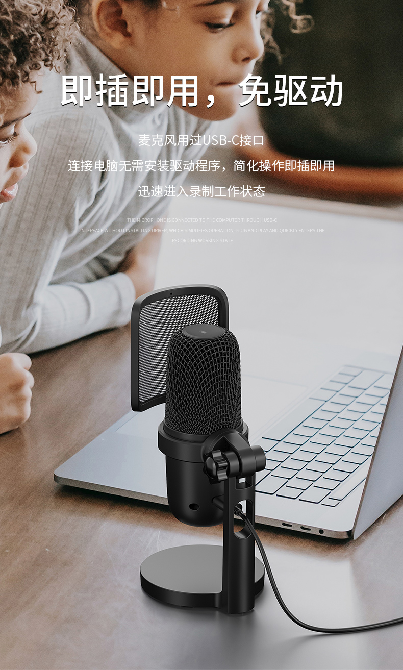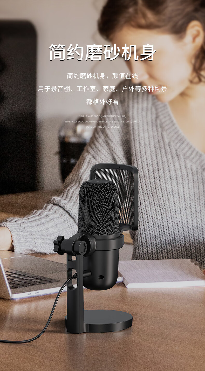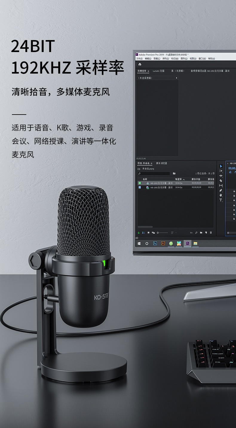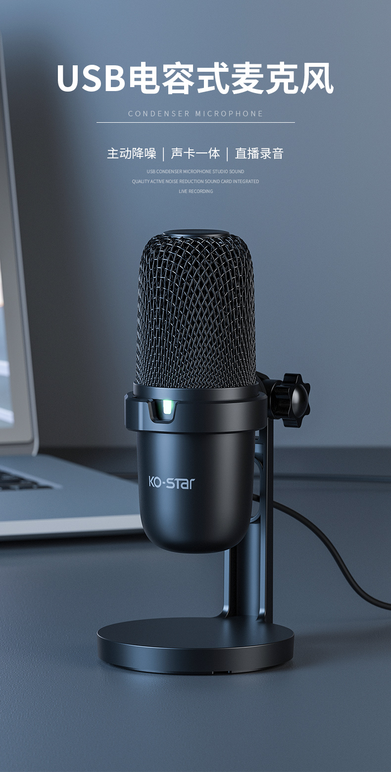 KO-STAR 电脑麦克风USB电容麦直播声卡降噪专业录音配音设备游戏唱歌网课台式笔记本手机有线话筒 USB电脑麦+即插即用-实时监听+触摸式静音"
