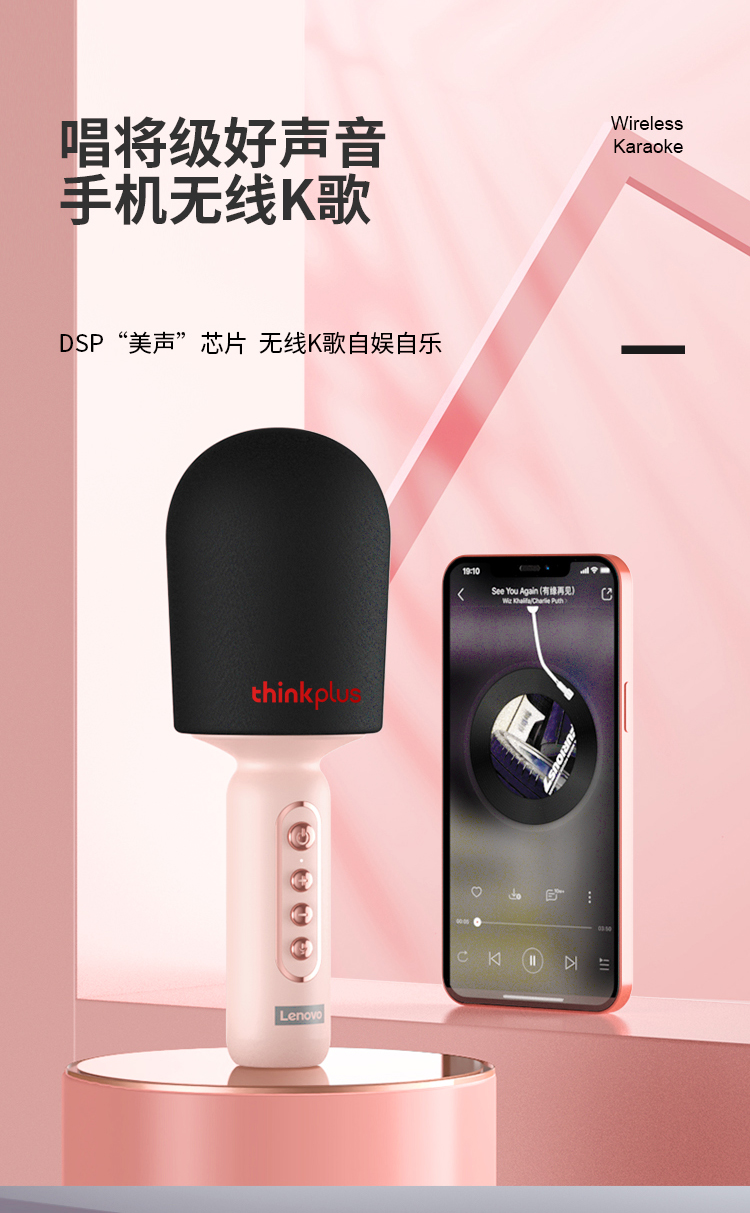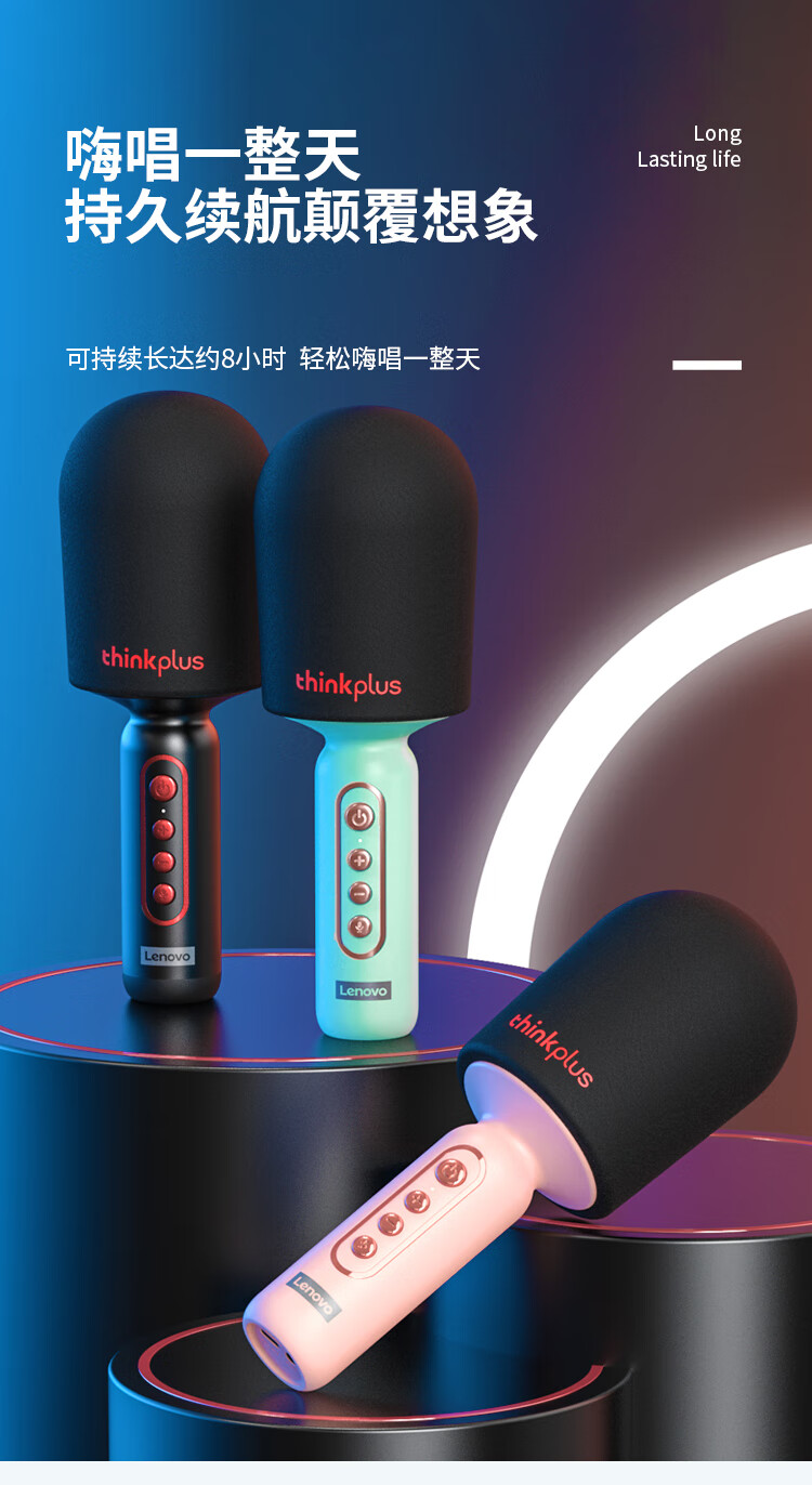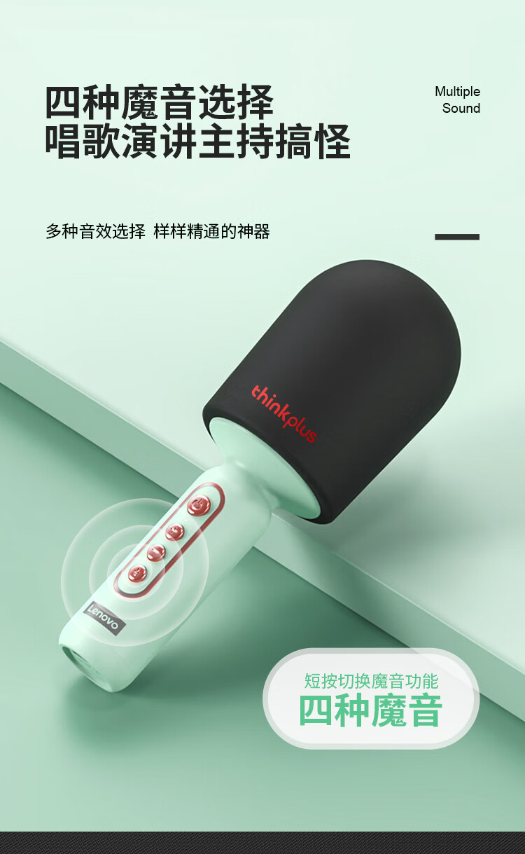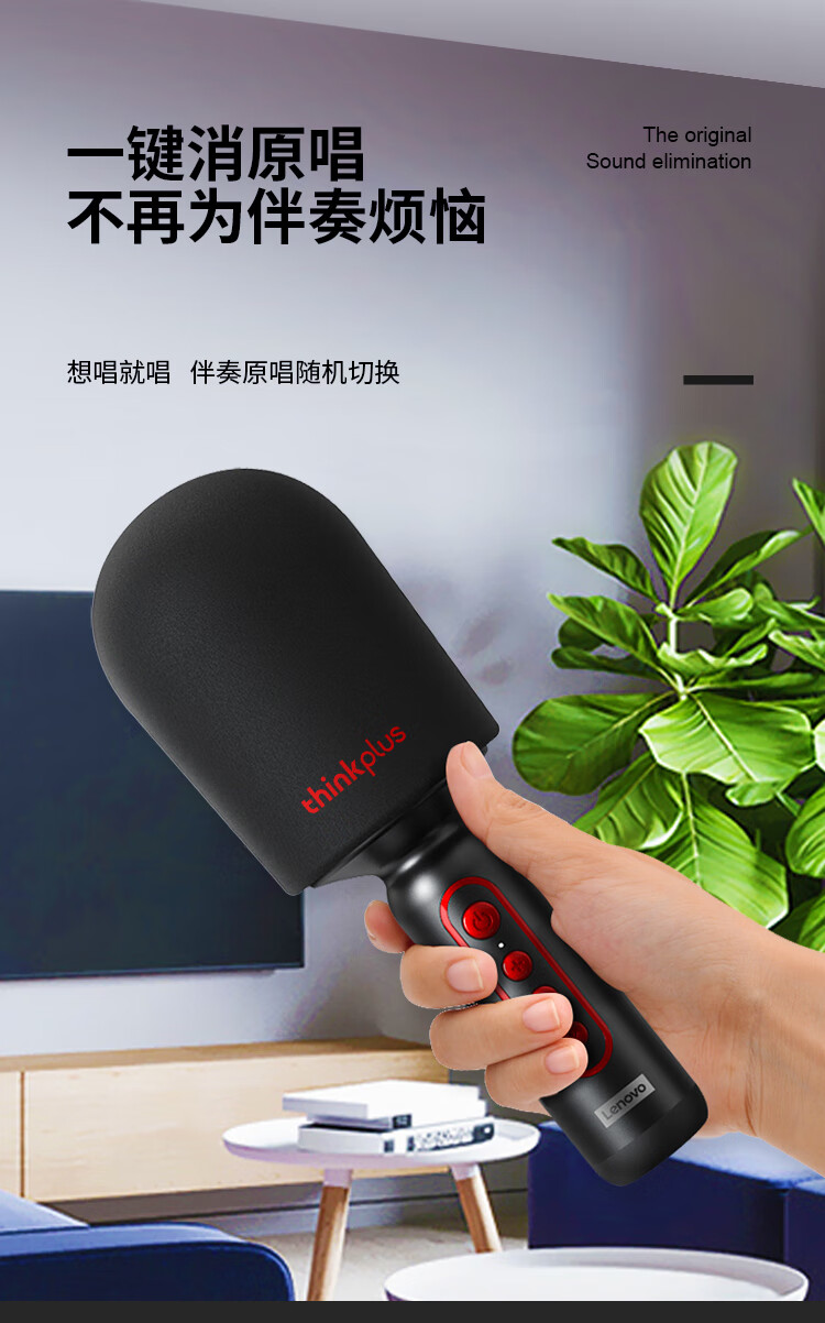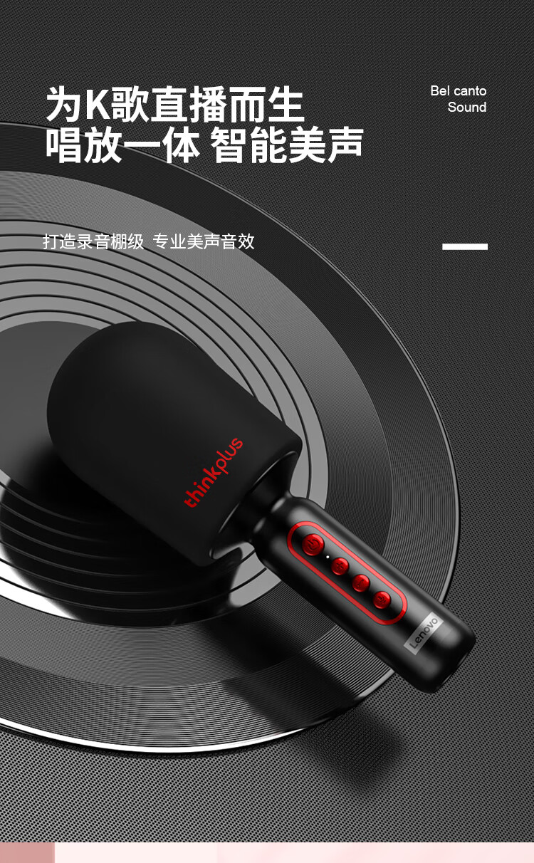 联想(ThinkPlus)全民k歌手机麦克风声卡套装 唱歌录音全向麦话筒主播神器音响一体无线蓝牙家庭ktv M1黑色