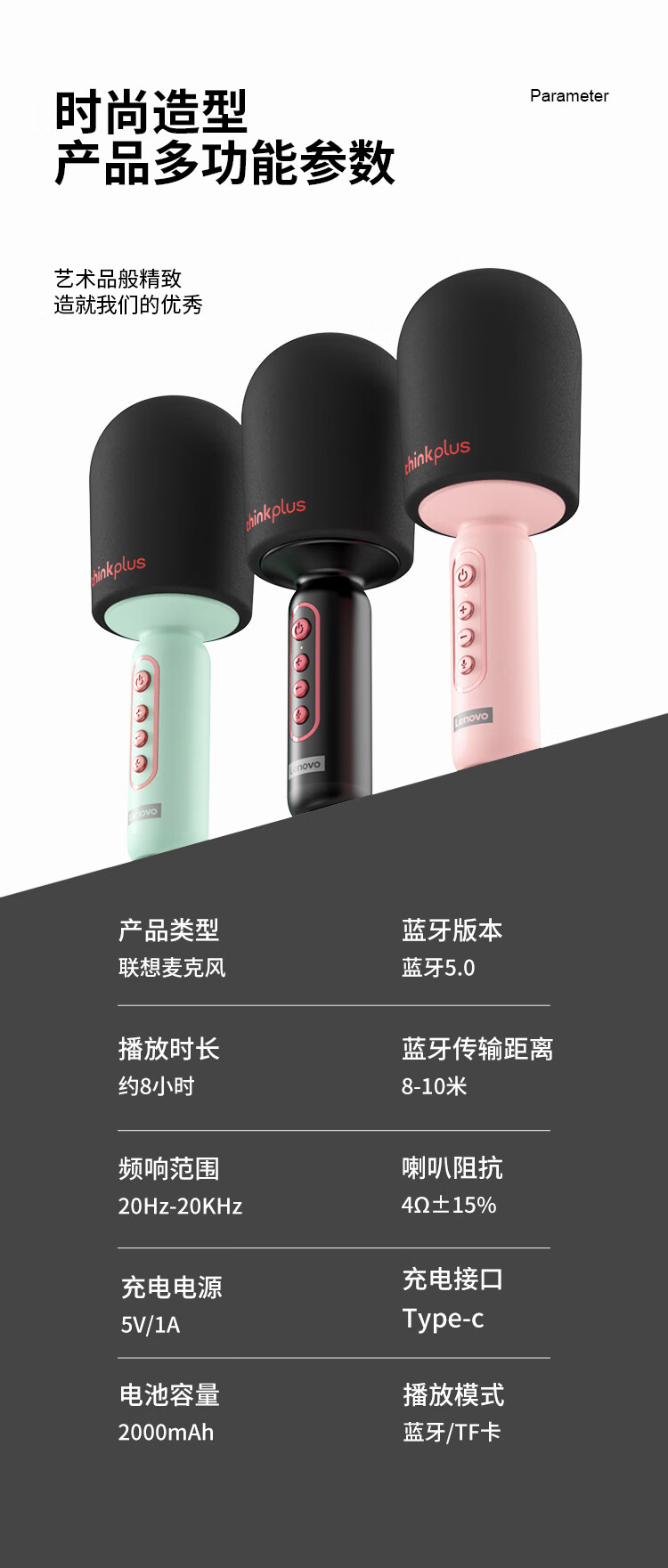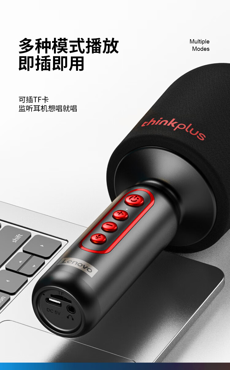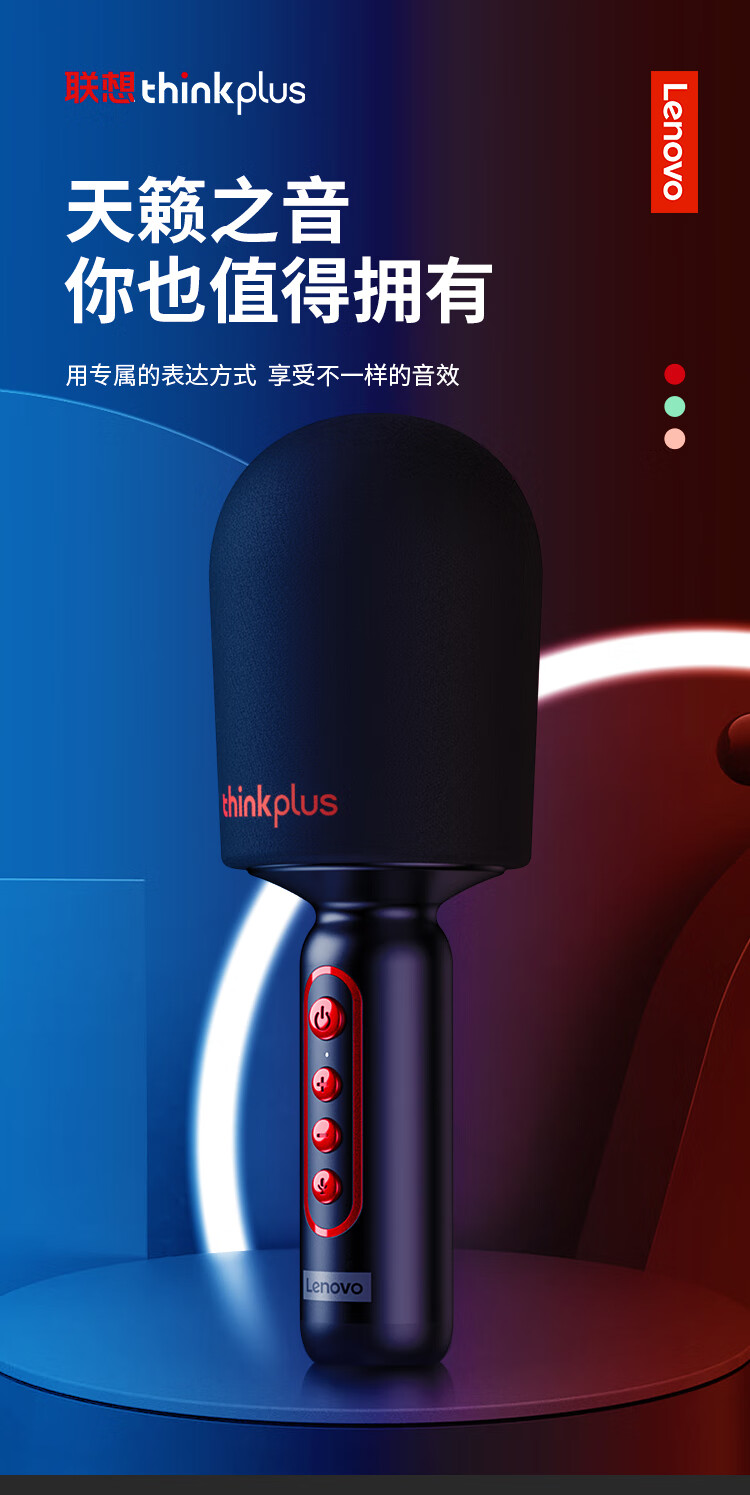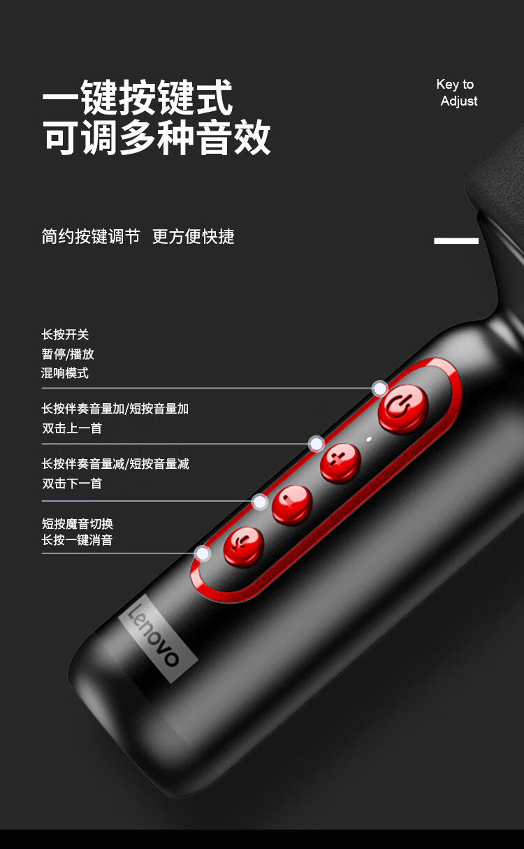 联想(ThinkPlus)全民k歌手机麦克风声卡套装 唱歌录音全向麦话筒主播神器音响一体无线蓝牙家庭ktv M1黑色