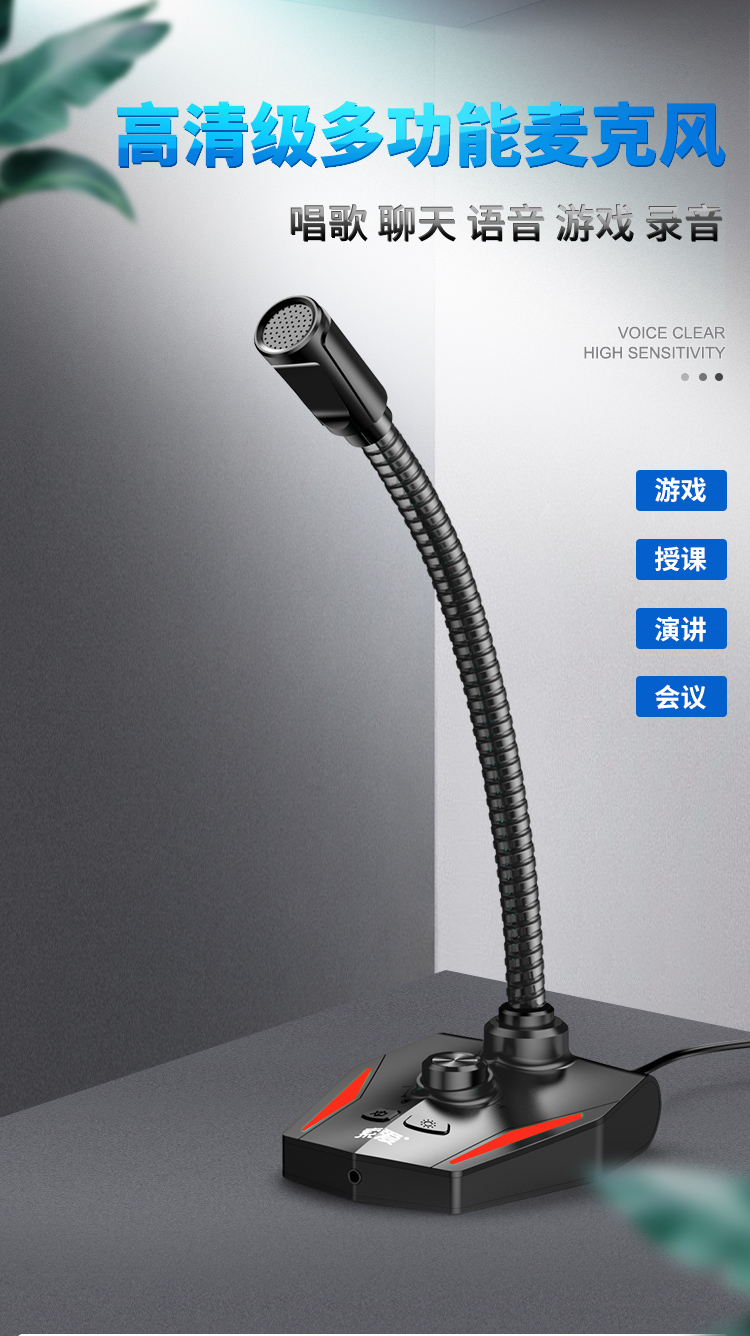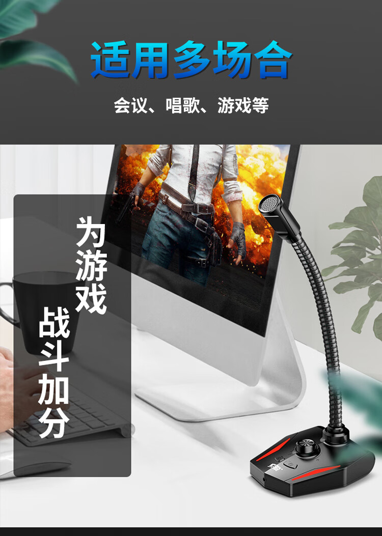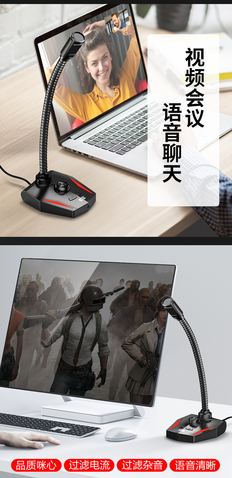 索爱 soaiy MK1电脑麦克风话筒 台式笔记本 网课电竞游戏语音 桌面会议 电容 主播直播 吃鸡3.5版 黑